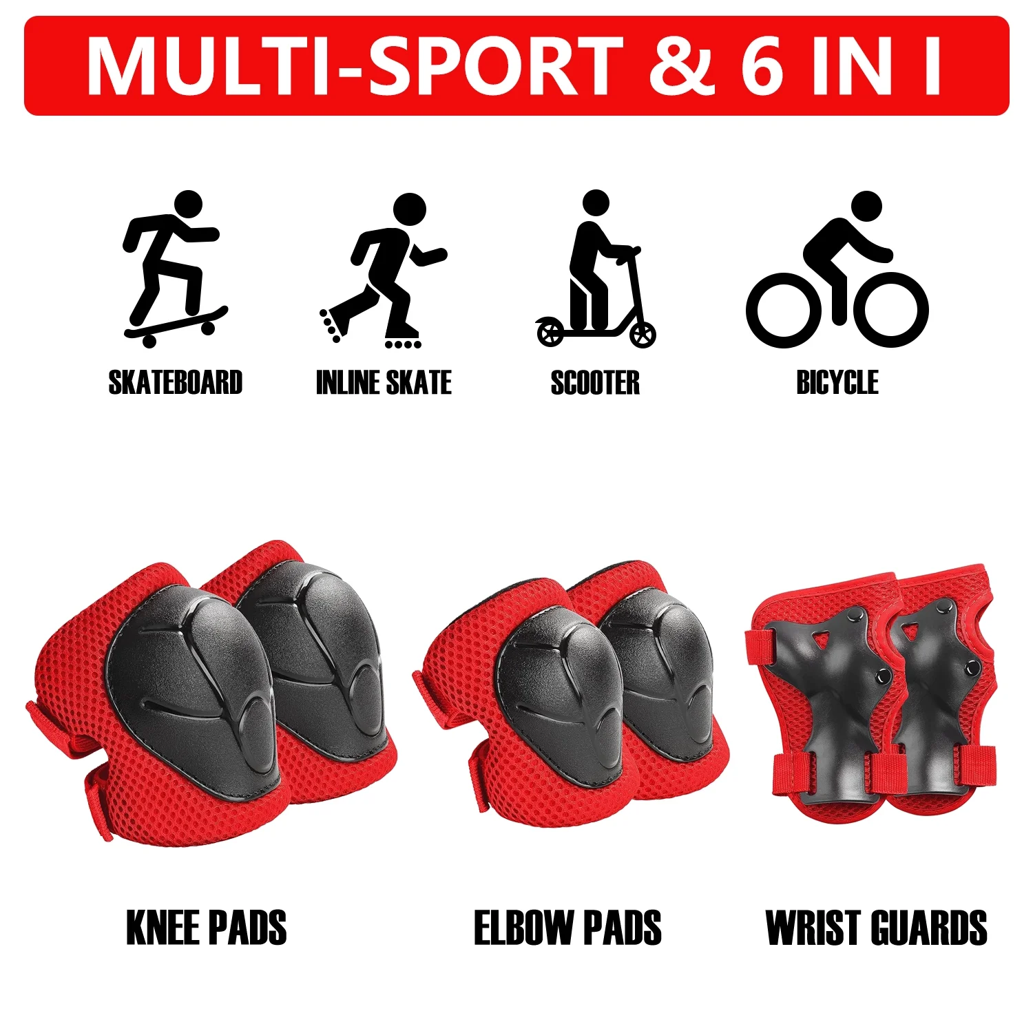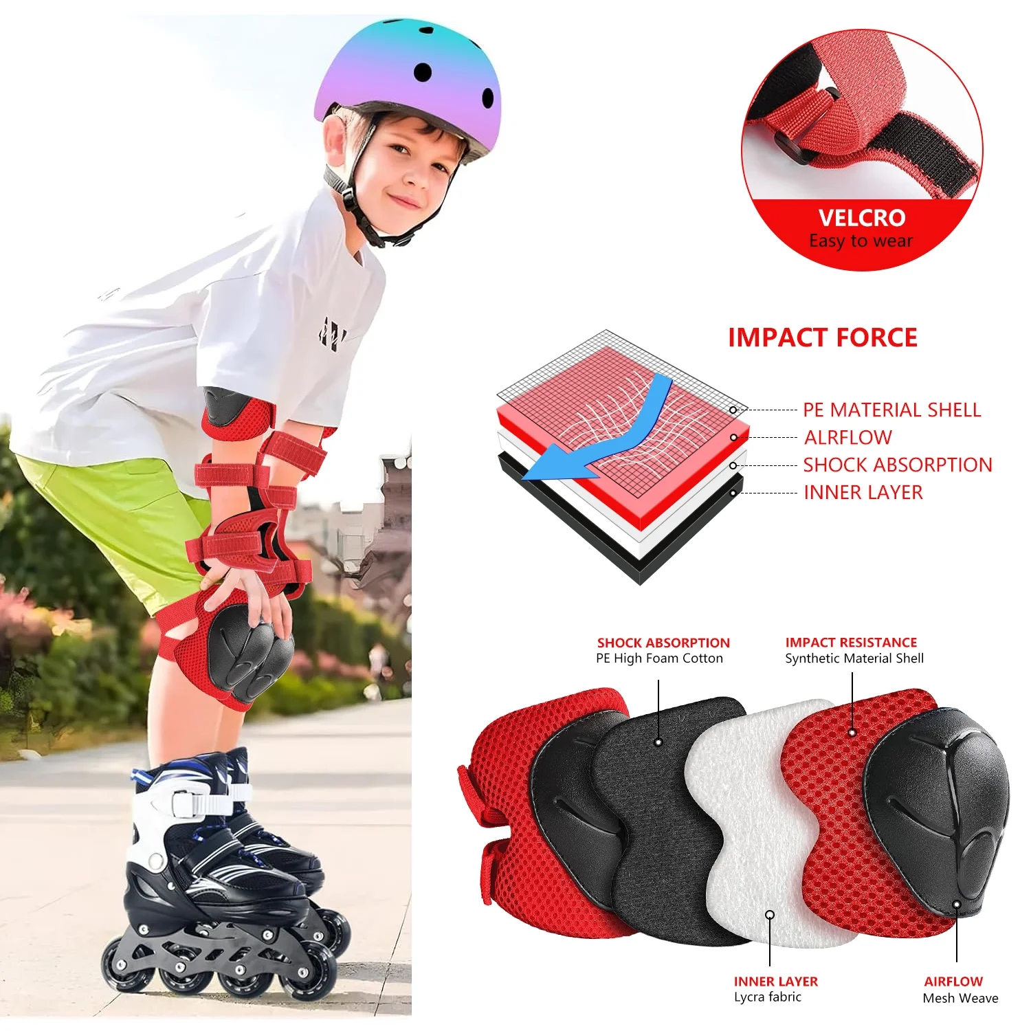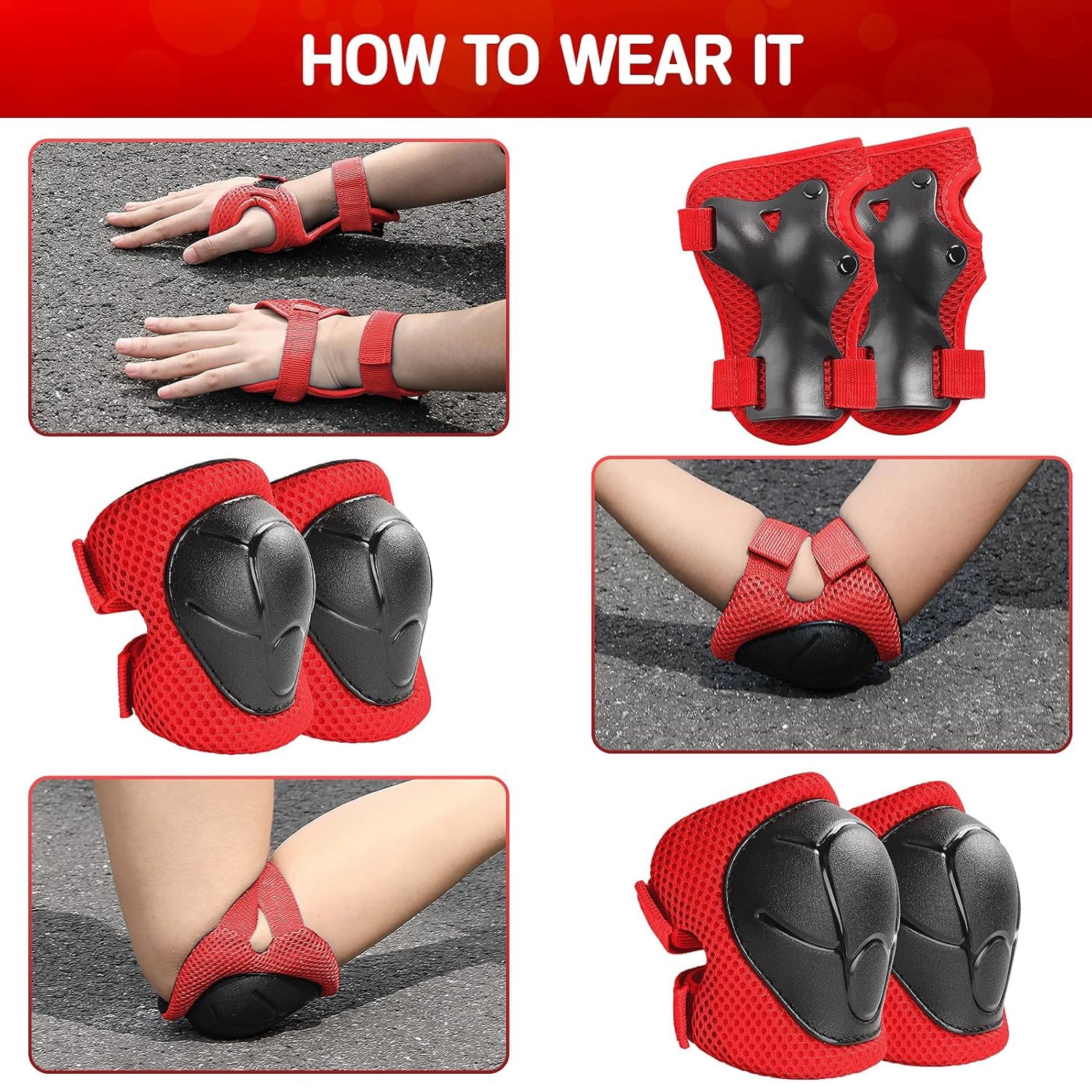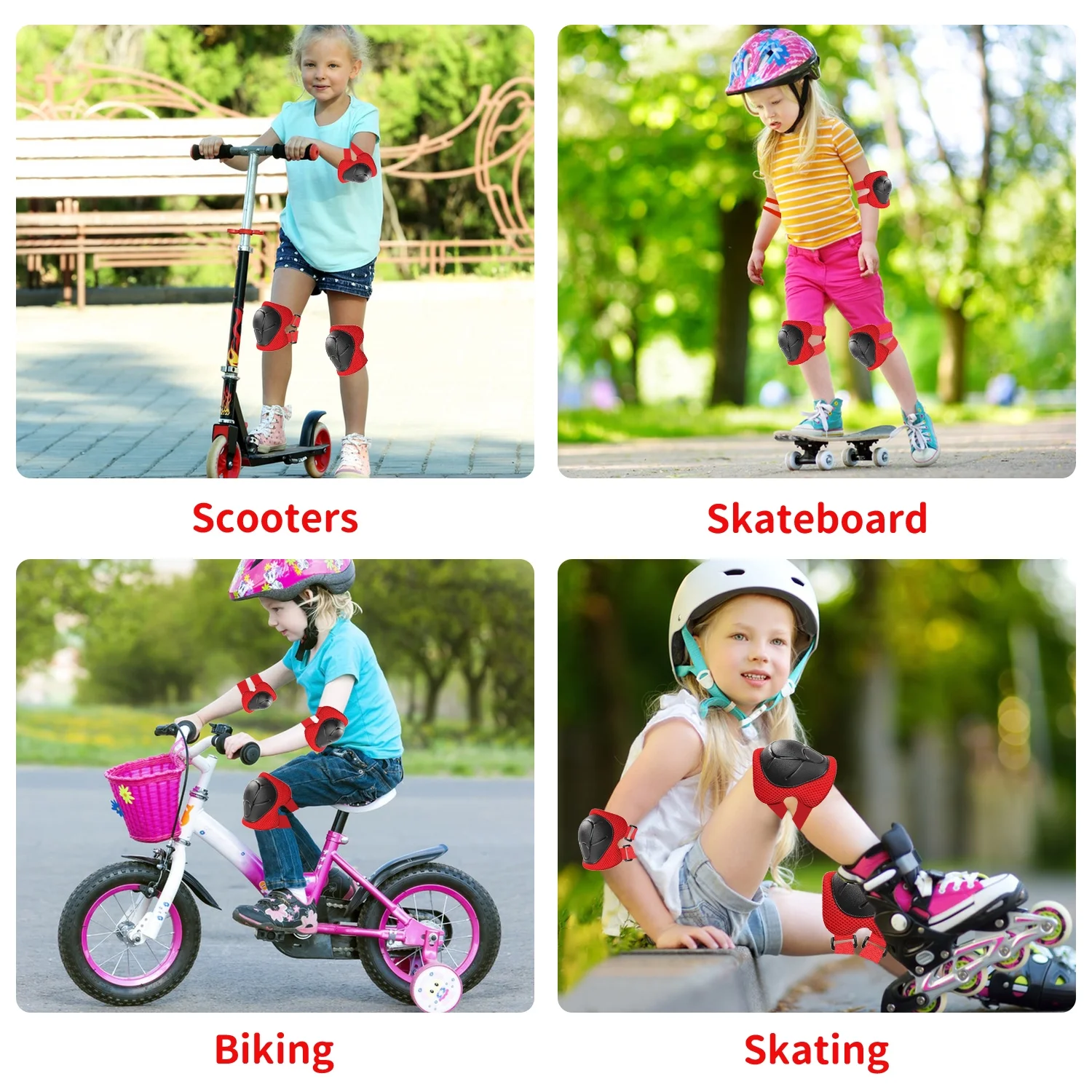 Features: 3 in 1 Protective Gear Set: Includes knee pads, elbow pads, and wrist guards for complete safety during sports. Thicken Double-Layer Padding: Effectively reduces impact and provides superior protection for knees, elbows, and wrists. Adjustable & Secure Fit: Upgraded elastic straps and strong Velcro ensure a comfortable and snug fit for kids aged 2-8. Breathable & Comfortable: Soft foam and cotton lining wick away sweat, keeping skin cool and refreshed even during intense activities. Curved Design: Transfers impact and minimizes injuries from falls, offering enhanced protection for roller skating, skateboarding, cycling, and more. Durable & Sturdy: Made from high-quality PVC and EVA materials, built to withstand outdoor sports and extreme activities. Perfect for Beginners: Enlarged elbow pads and wrist guards are ideal for kids learning skateboarding, rollerblading, or cycling. Versatile Use: Suitable for skateboarding, roller skating, skiing, biking, scooters, running, and other outdoor sports. Ideal Gift: A great present for Children’s Day, birthdays, Christmas, or any occasion for youth boys and girls. Upgraded Version 3.0: Improved design for better protection and comfort, making it a must-have for active kids. Package Includes: 2 x Elbow Pad, 2 x Knee Pad, 2 x Wrist Guard Frequently Asked Questions: Q: Is this size fit for my 15-year-old and 10-year-old girl? A: It’s a “small” size and suitable for 2-10 years old with a body weight between 33-70 pounds (Depending on the child’s height). Q: How can I safely wash these? A: No in the machine; Just hands and brush. Q: Would these be good for snowboarding or biking? A: Yes, I believe so, nice hard protective covers. Q: Is this a pair of each item? A: Yes
