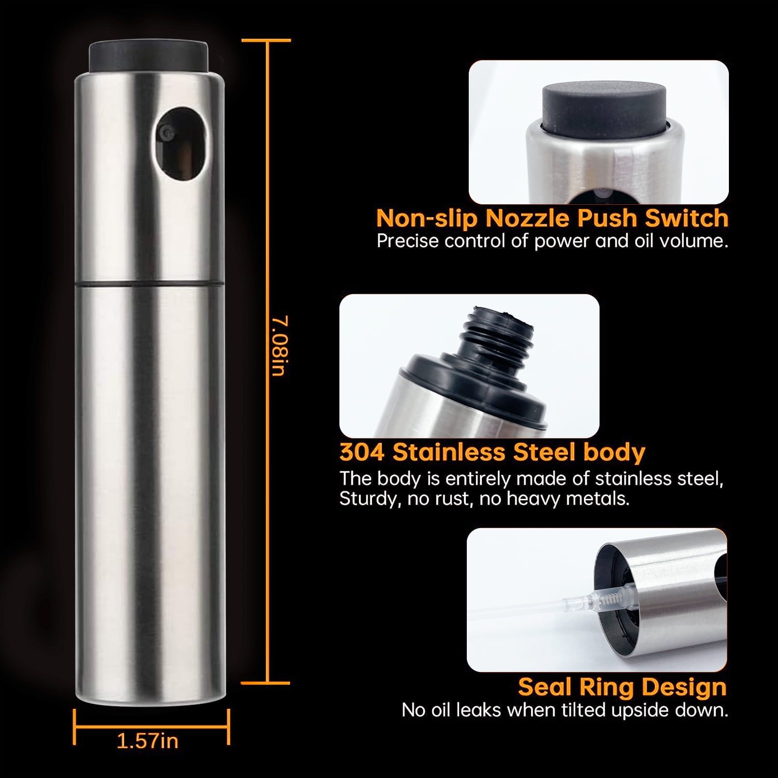 & Free ShippingOur reusable and multifunctional oil sprayer, made from durable stainless steel, is the perfect kitchen gadget that not only adds a touch of elegance but also allows you to effortlessly spray oil onto your food with just a light press of a button, providing even coverage for BBQ, salads, pasta, air frying, pans, and many other dishes; simply fill the spritzer bottle with oils, vinegars, lemon and lime juice, or marsala wine to create an even mist that covers everything perfectly, making it ideal for those looking to enhance their cooking experience.