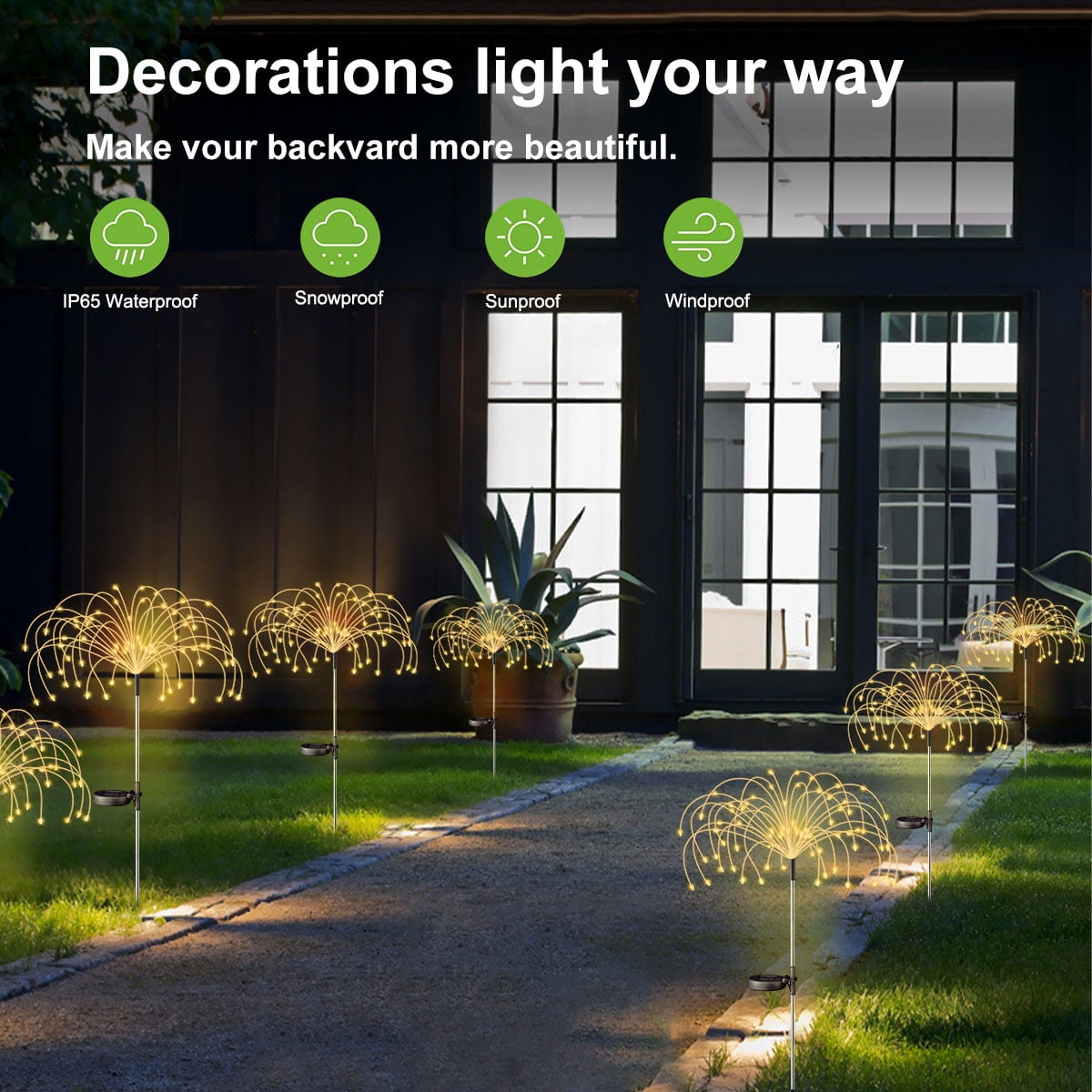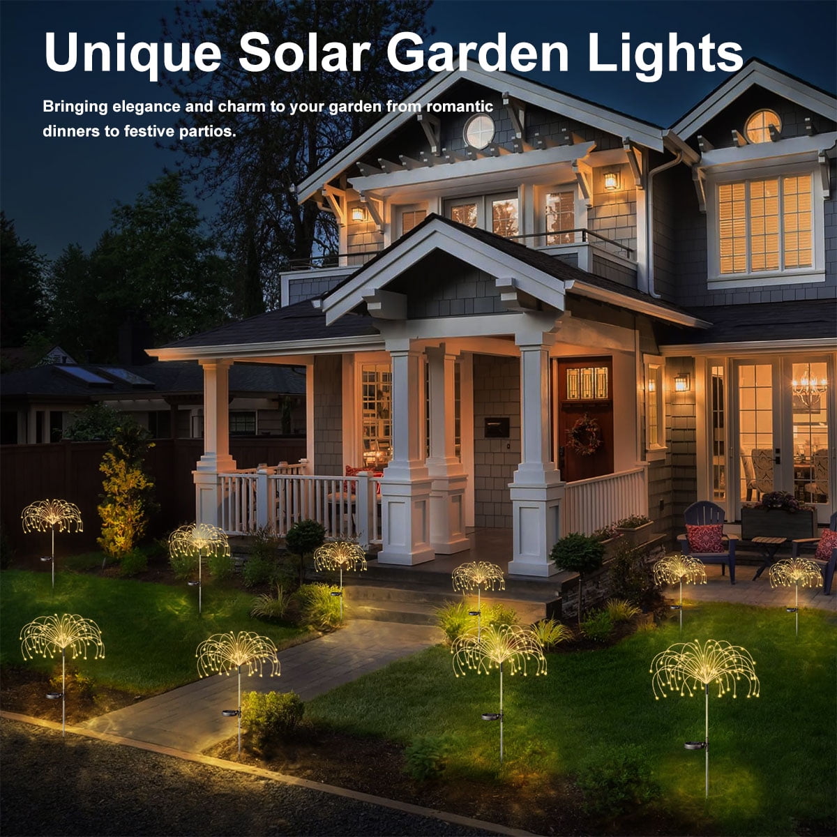 & Free ShippingBrighten your outdoor spaces with Rirool 2 Pack Solar Garden Lights! Featuring 120 vibrant LED beads, these solar-powered firework lights create stunning multicolor displays, perfect for pathways, gardens, yards, patios, and festive occasions like parties or Christmas decorations. Powered by a high-efficiency monocrystalline solar panel, these lights charge in just 6-8 hours under sunlight and automatically turn on at dusk, providing up to 12 hours of energy-efficient illumination. The flexible copper wire allows you to DIY unique shapes like fireworks, flowers, hearts, or spirals, adding a personalized touch to your outdoor decor. Designed with an IP65 waterproof rating, these lights are built to withstand rain, snow, and harsh weather, ensuring year-round durability. Installation is a breeze—simply plant the stakes, turn on the switch, and enjoy instant ambiance without any wiring or cables. Whether you’re decorating for a special event or enhancing your everyday outdoor space, Rirool Solar Garden Lights offer endless possibilities. Plus, with our 100% satisfaction guarantee, you can shop with confidence. Create a magical atmosphere today with Rirool!