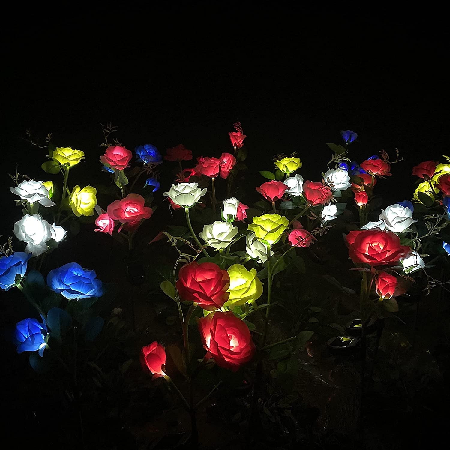 Rirool 2-Pack Solar Rose Flower Stake Lights, 10 Waterproof LED Flowers for Outdoor Garden, Pathway, Patio, Yard Decoration, Blue – Red