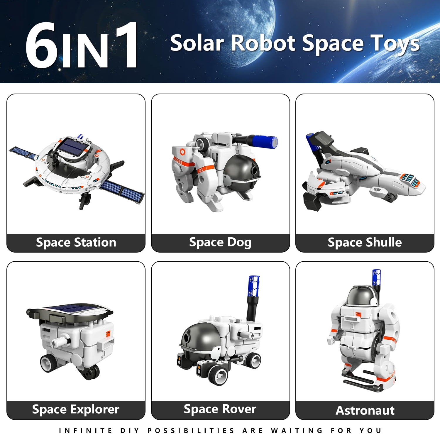 Rirool 6-in-1 Solar Robot Kit for Kids Ages 8-12, STEM Space Station, Rover, Shuttle, Dog & Explorer Models, DIY Educational Science Kit, Solar Powered or Battery Operated, Gift for Boys & Girls
