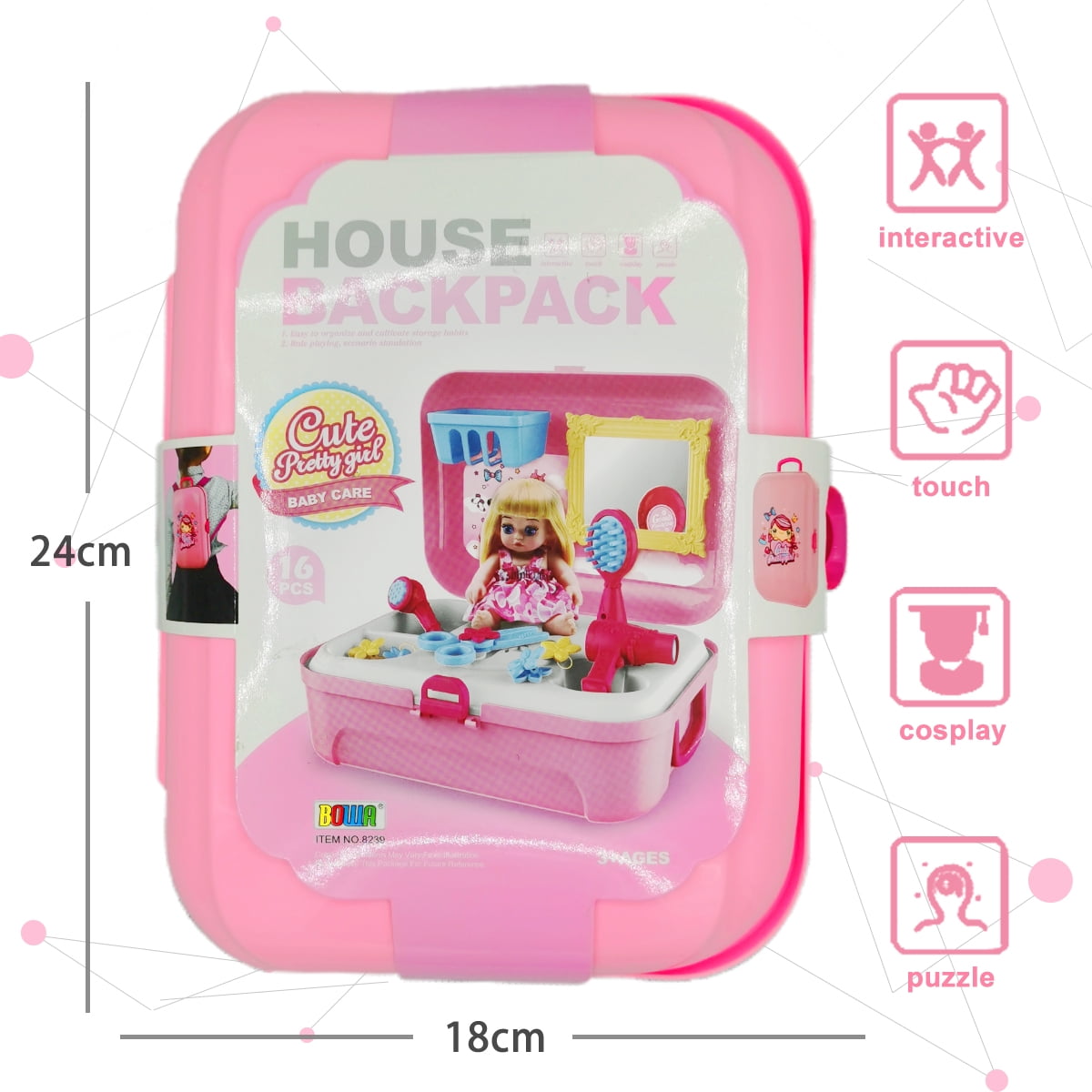 & Free ShippingThe Rirool Little Princess Doll Dressing Backpack & 16-Piece Accessories Set is a perfect pretend play kit for girls and toddlers. This all-in-one bath and shower kit includes a backpack to store 16 accessories, such as a princess doll, hair dryer, mirror, comb, scissors, hairpins, basket, tray, sprinkler, and stickers. Designed for safe and colorful play, the Rirool Little Princess Doll Dressing Backpack encourages imagination, creativity, and social skills while providing hours of fun. Ideal as a birthday gift or special surprise for girls ages 3 and up, this portable set allows children to care for their dolls anywhere, making playtime engaging, educational, and delightful.