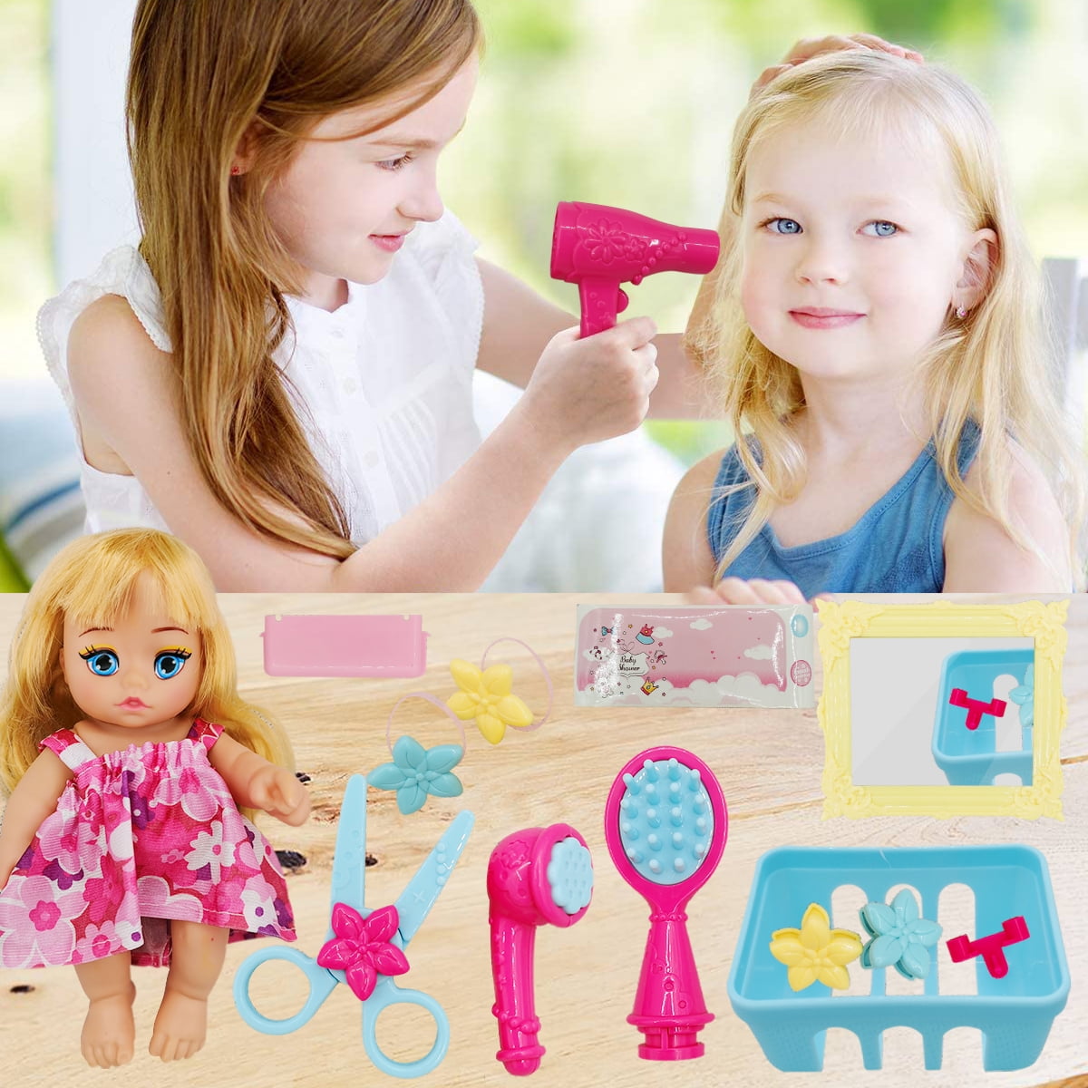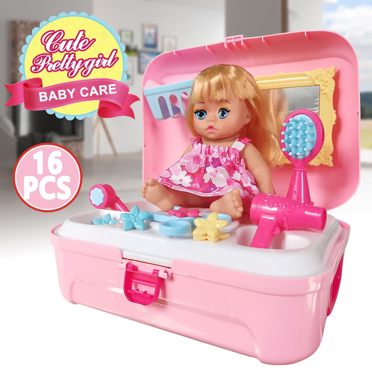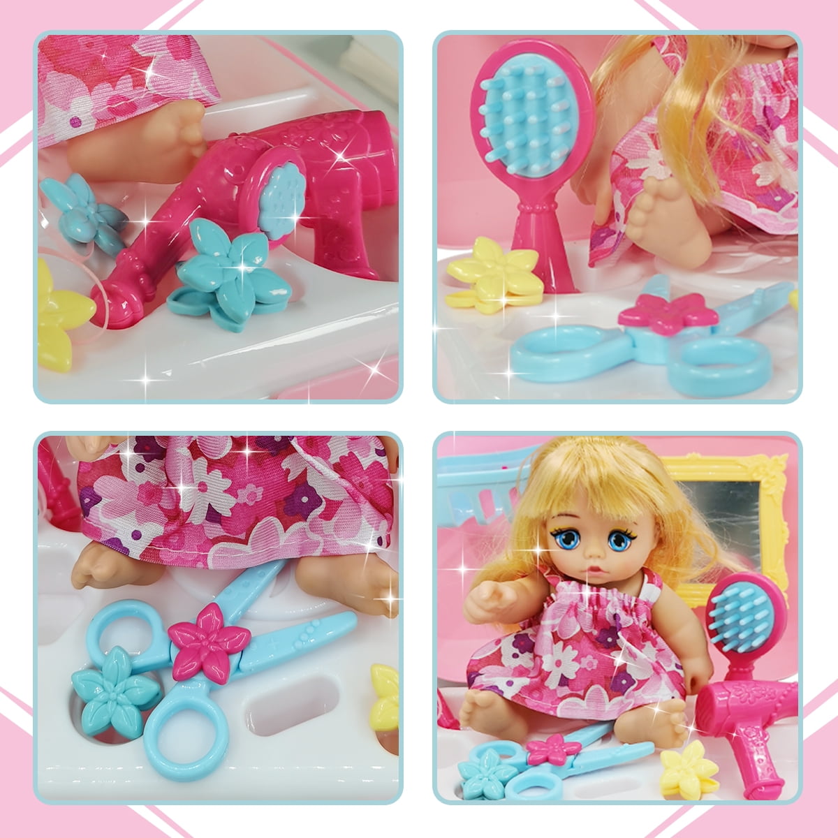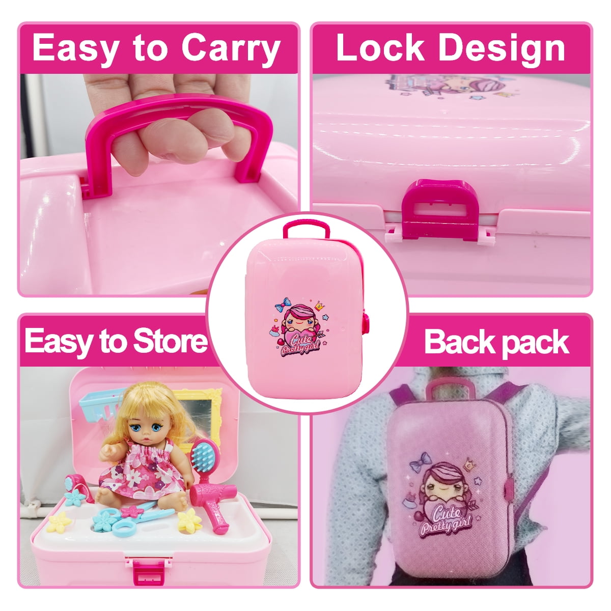 ๐ Complete 16-Piece Doll Dressing Set including princess doll, hair dryer, mirror, comb, scissors, hairpins, basket, tray, sprinkler, and stickers for hours of pretend play ๐ Portable backpack design stores all accessories neatly and allows children to carry their play set anywhere ๐ Safe, smooth, and rounded materials with dazzling colors ensure a fun and secure play experience for toddlers and girls ๐ง Encourages imagination, creativity, and social skills as children care for their dolls and role-play daily routines ๐ Ideal birthday or special occasion gift for girls ages 3 and up, packaged to delight little princesses ๐ Compact size: Approx. 9.8 x 7.6 x 4.3 inches; Weight: 17.6 oz / 500 g; Package weight: 470 g / 1.03 lbs โ ๏ธ Notice: Actual colors may vary slightly due to monitor settings; please allow slight measurement deviations ๐งผ Easy to clean with a damp cloth; avoid harsh chemicals to maintain vibrant colors and safe materials