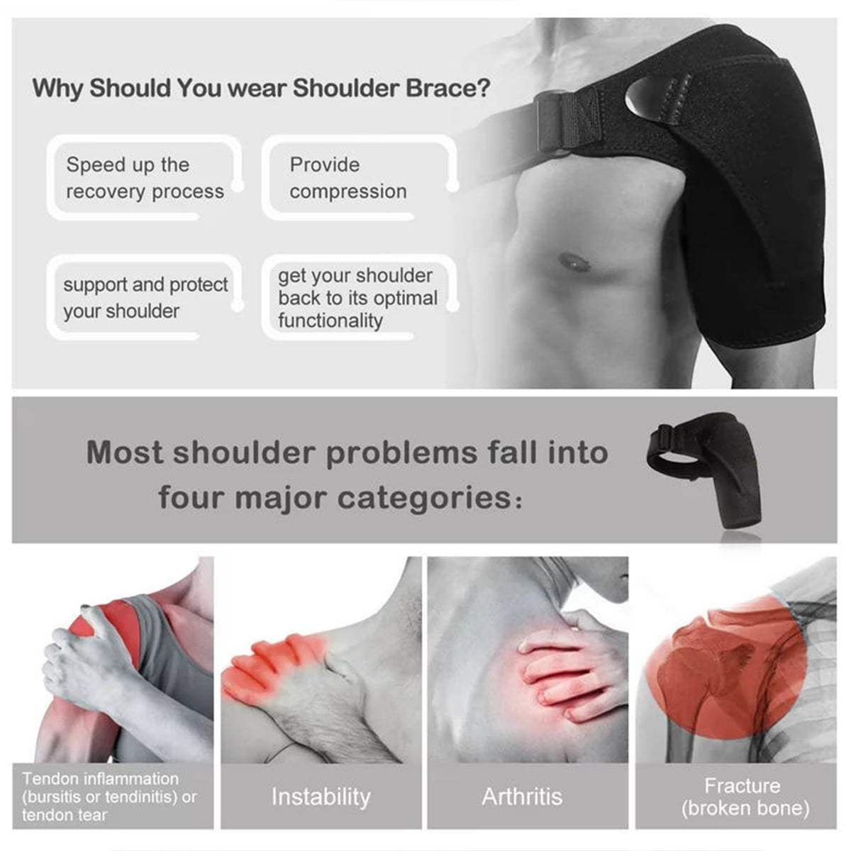 & Free ShippingThe Shoulder Brace Sleeve Cuff offers stability, compression support, and relief for various shoulder injuries such as sprains, dislocations, rotator cuff tears, frozen shoulder, and more. Made with adjustable neoprene material, this wrap provides a secure fit and is breathable. It effectively reduces swelling, inflammation, and pain while promoting healing. Suitable for both right and left shoulders, this versatile shoulder brace sleeve is designed to provide comfort and support during daily activities or sports. Whether you are recovering from an injury or seeking preventive care, this shoulder brace is an essential tool for enhancing stability, reducing discomfort, and aiding in the recovery process. Don’t let shoulder issues hold you back – choose the Shoulder Brace Sleeve Cuff for reliable support and relief.
