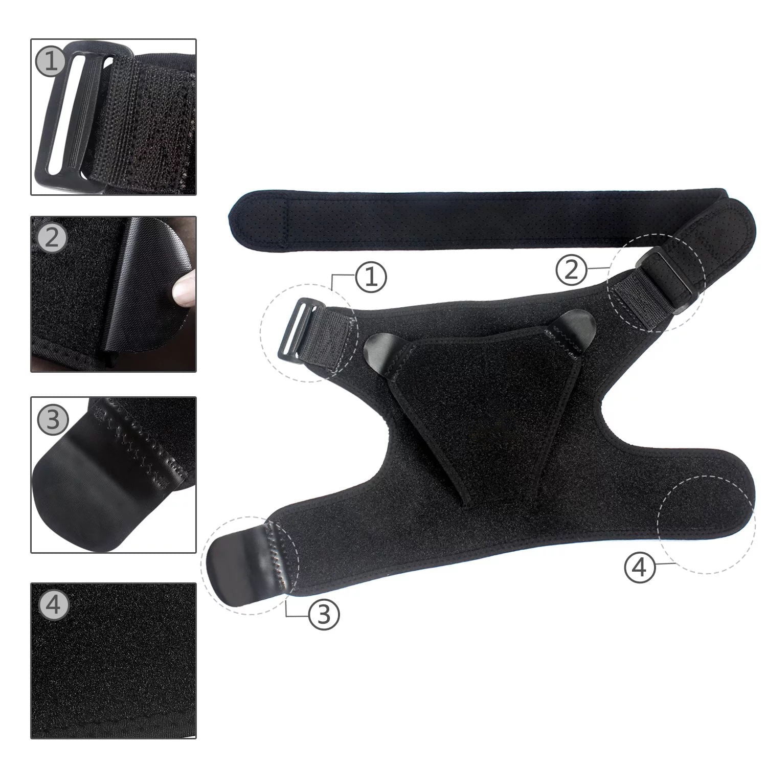 Specifications: Size: Universal size fits comfortably on either the left or the right shoulder. Chest Size Range: 33” to 45” Upper Arm Size Range: 9” to 16” Features: Speeds up Recovery: Helps accelerate the recovery process for various shoulder injuries. Injury Protection: Provides support and protection, preventing further injury to the shoulder. Compression Support: Offers compression that enhances receptors in the skin, improving proprioception and understanding of shoulder position. Versatile in Rehabilitation: Assists during different stages of the rehabilitation process. Flexible and Adjustable: Universal size strap designed for comfortable use by both men and women. Can be worn over clothes or under garments using only one hand. Tips: Common Shoulder Problems: Tendon inflammation/tear, instability, arthritis, fracture (broken bone). Shoulder Anatomy: Consists of humerus, scapula, and clavicle. The rotator cuff muscles and tendons keep the arm bone centered in the shoulder socket. Shoulder Brace Guide: Sling-like device designed to support and strengthen the shoulder. Ideal for individuals with shoulder injuries, providing stronger and more reliable support than basic slings. Improved Proprioception: As rehabilitation progresses, a shoulder brace can enhance the sense of body positioning (proprioception). Satisfaction Guarantee: If not fully satisfied with the shoulder brace, return for a refund.