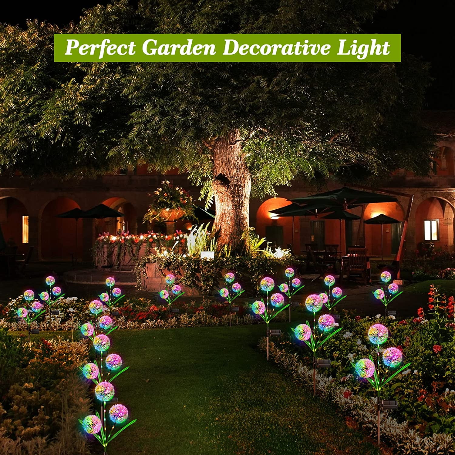 & Free ShippingThe Rirool Solar Dandelion Lights, 2 Pack 36 LED, provide colorful and charming illumination for your outdoor spaces. These solar garden lights are perfect for yards, lawns, pathways, patios, and wedding decorations. Featuring a high-efficiency monocrystalline silicon solar panel, the lights automatically turn on at dusk and off at dawn, offering hassle-free operation with up to 8β10 hours of illumination. Made with weather-resistant ABS and stainless steel, and flexible dandelion stems, they are durable, easy to install without wiring or extra batteries, and ideal for creating a romantic and warm ambiance. Perfect gift for family and friends.
