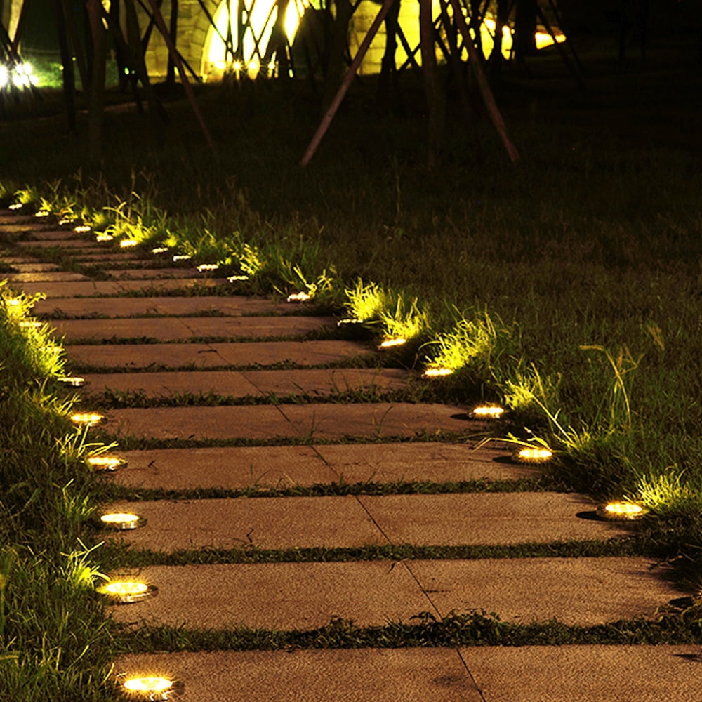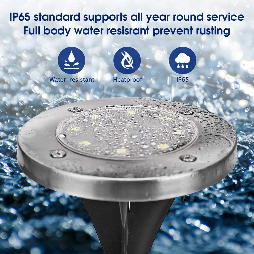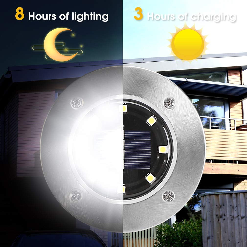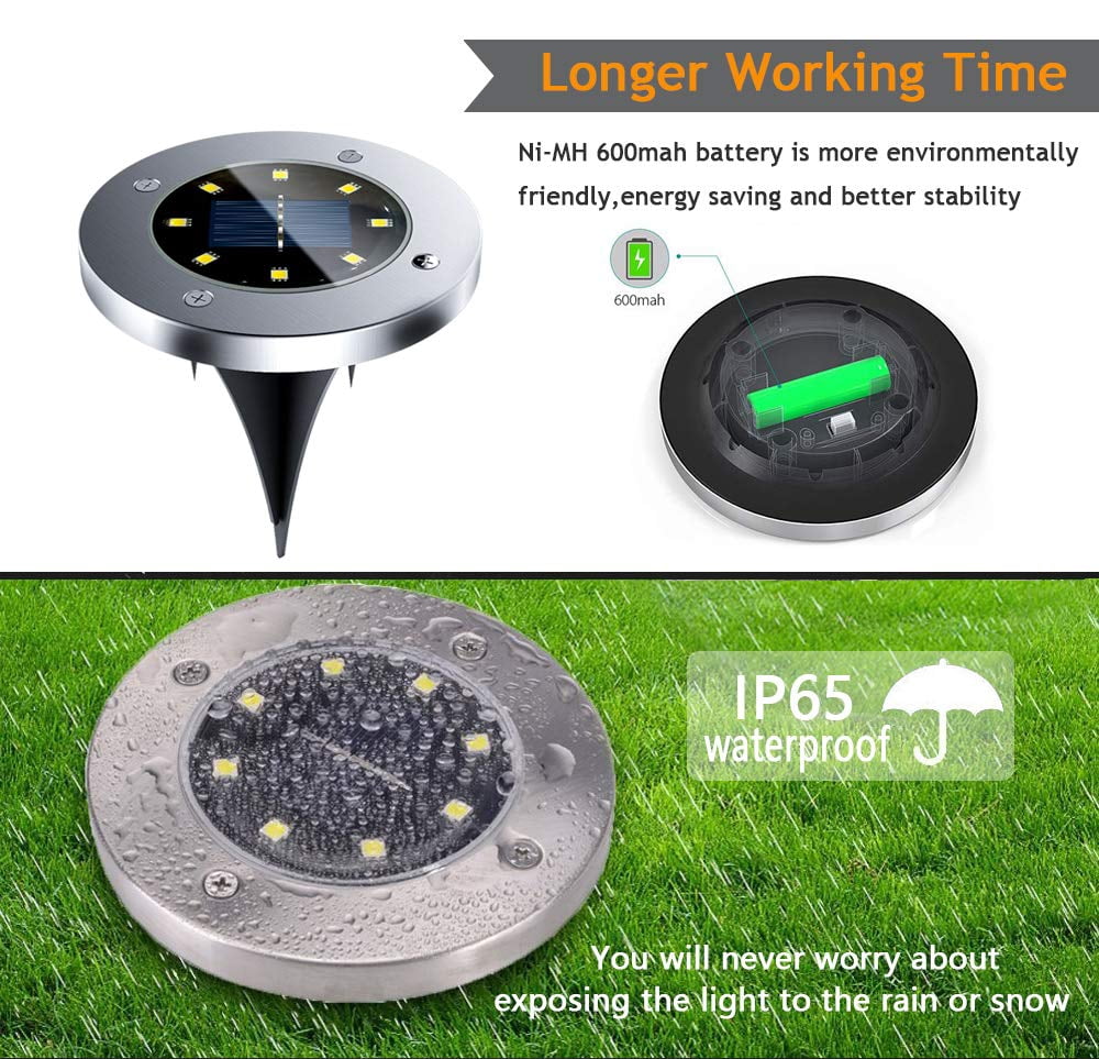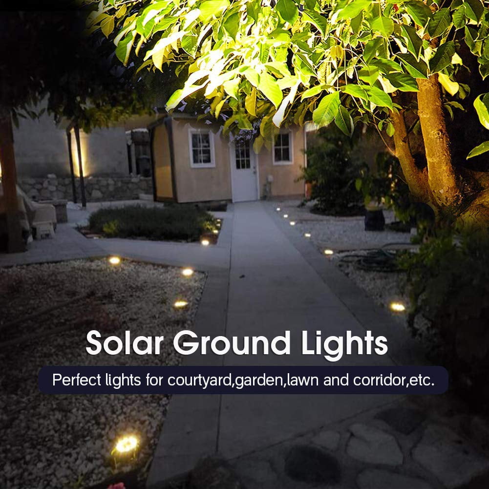Rirool Solar Ground Lights, 8 LED Outdoor Waterproof Garden Pathway Lighting – Warm White 8 Pack